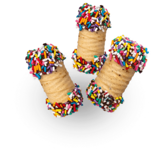 Ice cream all over and orange on top. Blood orange ice cream wrapped with vanilla ice cream. Topped for good measure with orange puree.